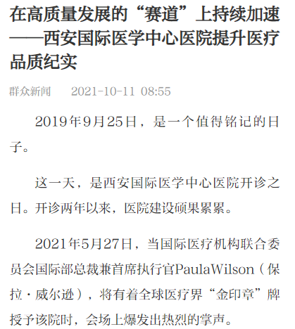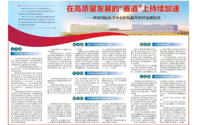 編者按:今日,《陜西日?qǐng)?bào)》A8版刊登了醫(yī)院提升醫(yī)療品質(zhì)紀(jì)實(shí)的長(zhǎng)篇報(bào)道,從人才、技術(shù)、制度、學(xué)術(shù)、服務(wù)、公益等方面,全方位展示了醫(yī)院兩年來(lái)的發(fā)展進(jìn)程。