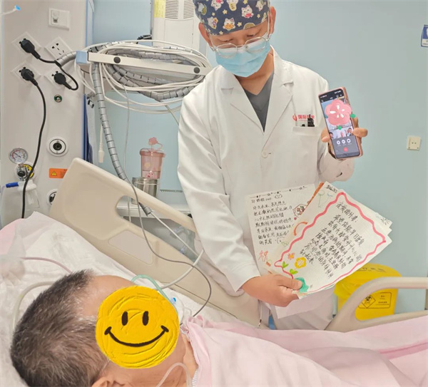 深知家屬的牽掛,護士們會細(xì)心記錄患者的狀態(tài),向家屬詳細(xì)轉(zhuǎn)達(dá)。她們鼓勵家屬錄制語音或視頻,將家人的聲音和面容帶到床邊。有時,一句來自孫輩的“爺爺加油”,一段愛人熟悉的叮嚀,就能讓患者樹立起戰(zhàn)勝病魔的信心。