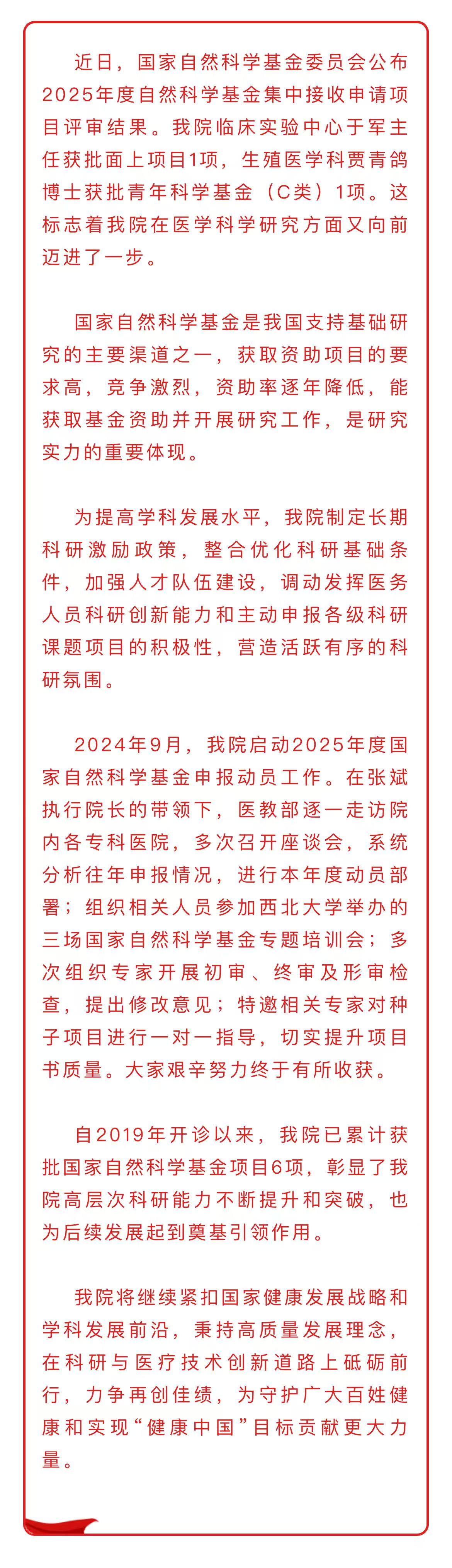 喜訊!我院獲批兩項2025年度國家自然科學(xué)基金項目