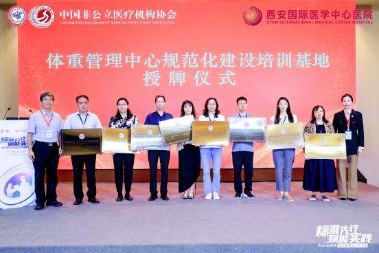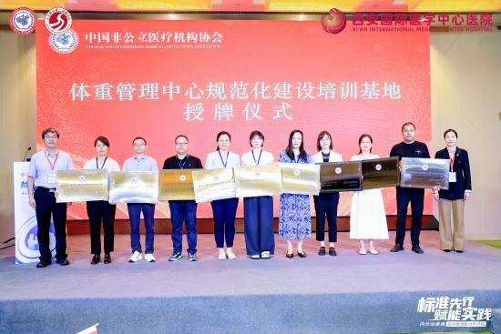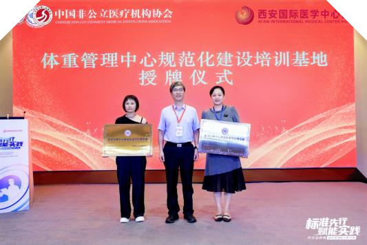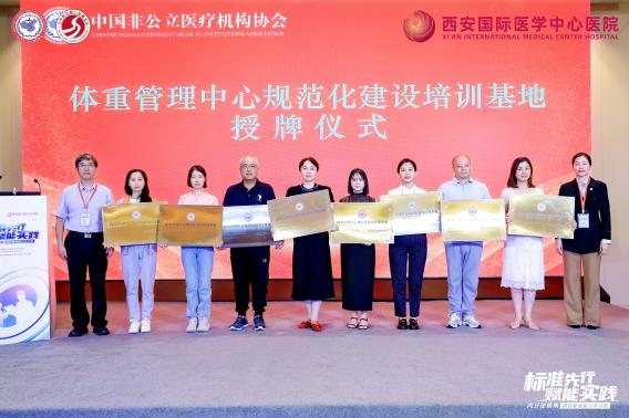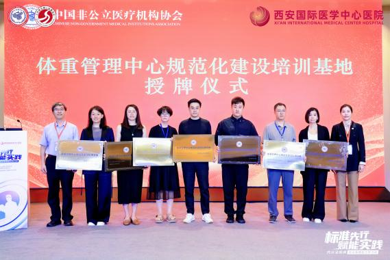 為破解這一困局,中國非公立醫(yī)療機(jī)構(gòu)協(xié)會(huì)積極推進(jìn)標(biāo)準(zhǔn)化與協(xié)同化建設(shè),經(jīng)嚴(yán)格評(píng)審,對(duì)40家機(jī)構(gòu)授予“體重管理中心規(guī)范化建設(shè)培訓(xùn)基地”稱號(hào),并為到場(chǎng)的35家機(jī)構(gòu)代表舉行授牌儀式。